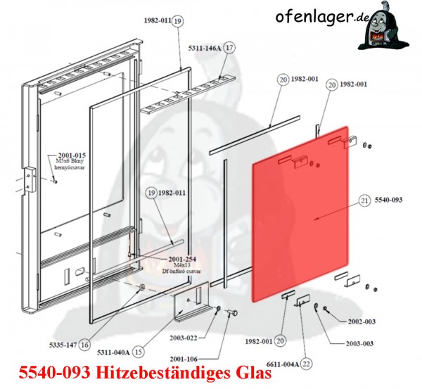 Es wird empfohlen beim Scheibenwechsel auch die Dichtung zwischen Scheibe und Ofentür zu wechseln Artikel Nr. 1982-001